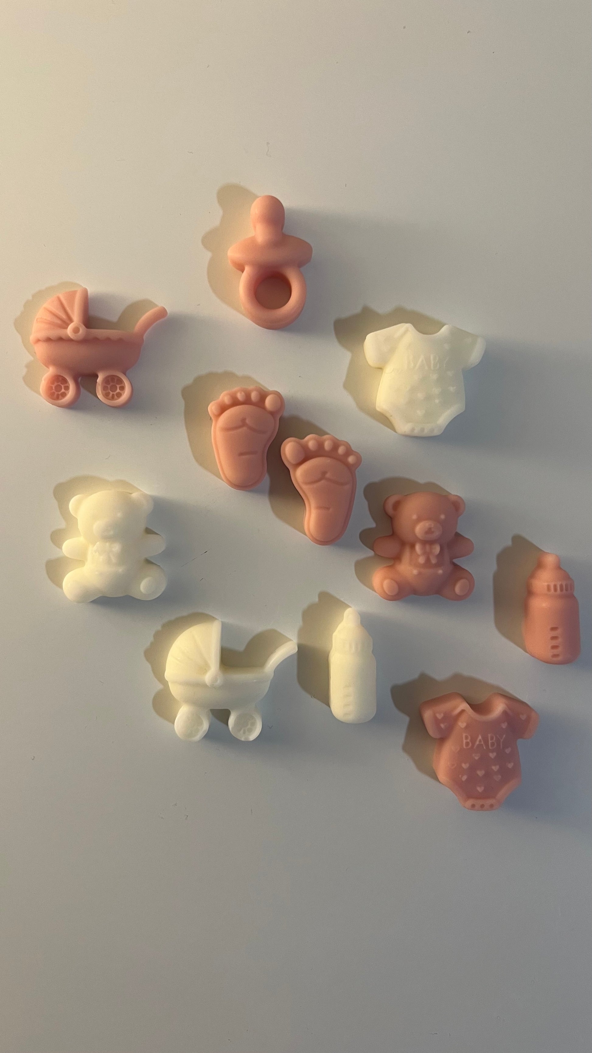 Mix di cialdine con varie forme (body, carrozzina, ciuccio, biberon, orsetto)