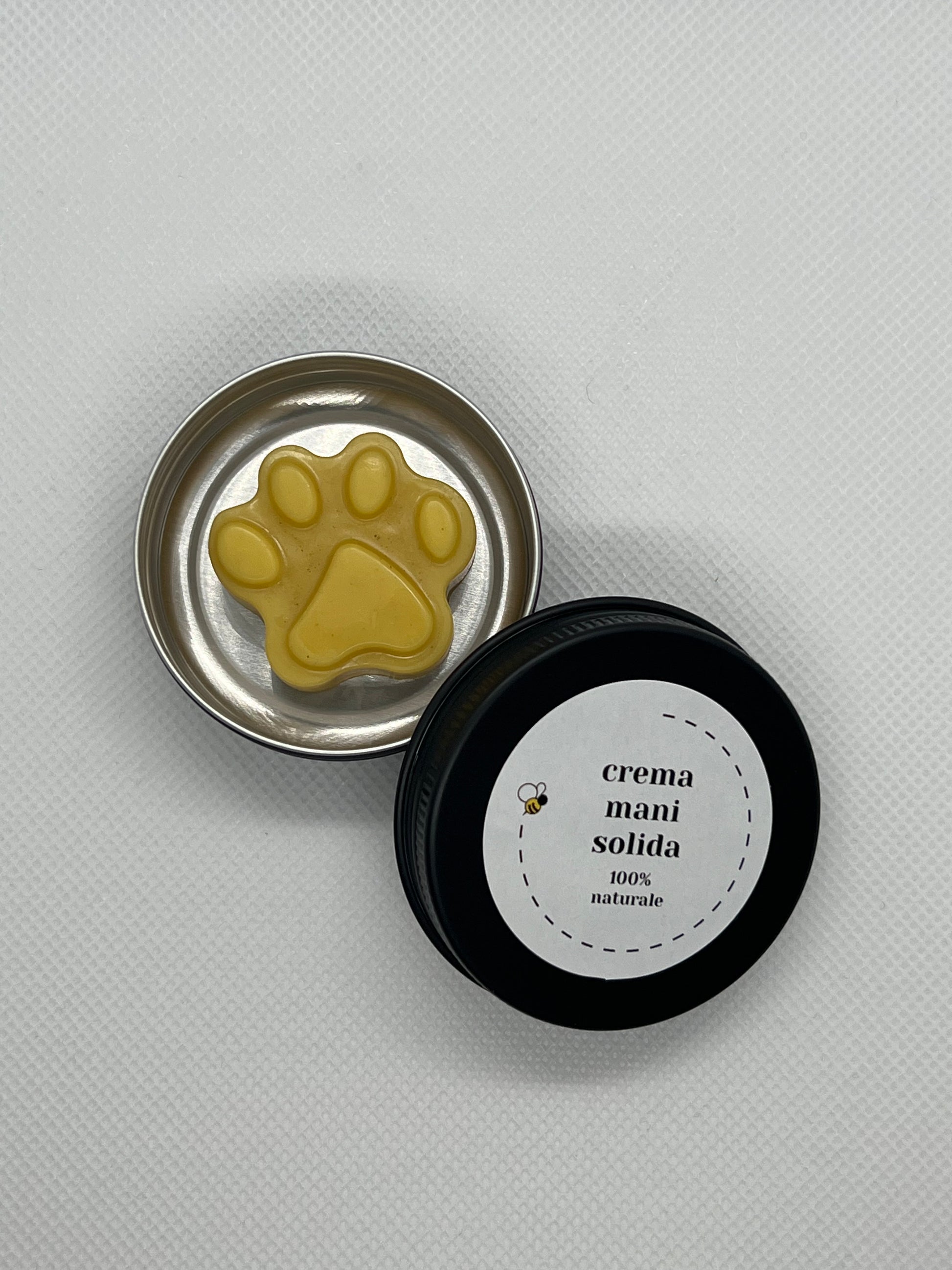 Crema mani solida a forma di impronta con barattolino