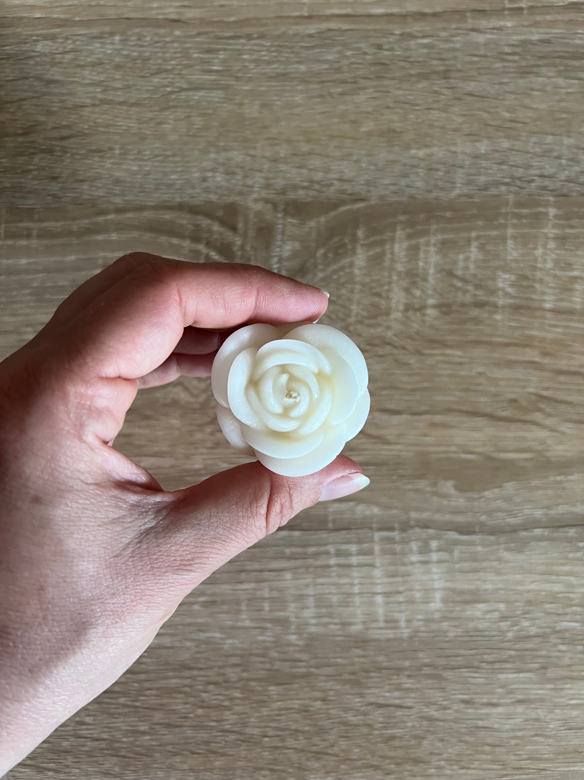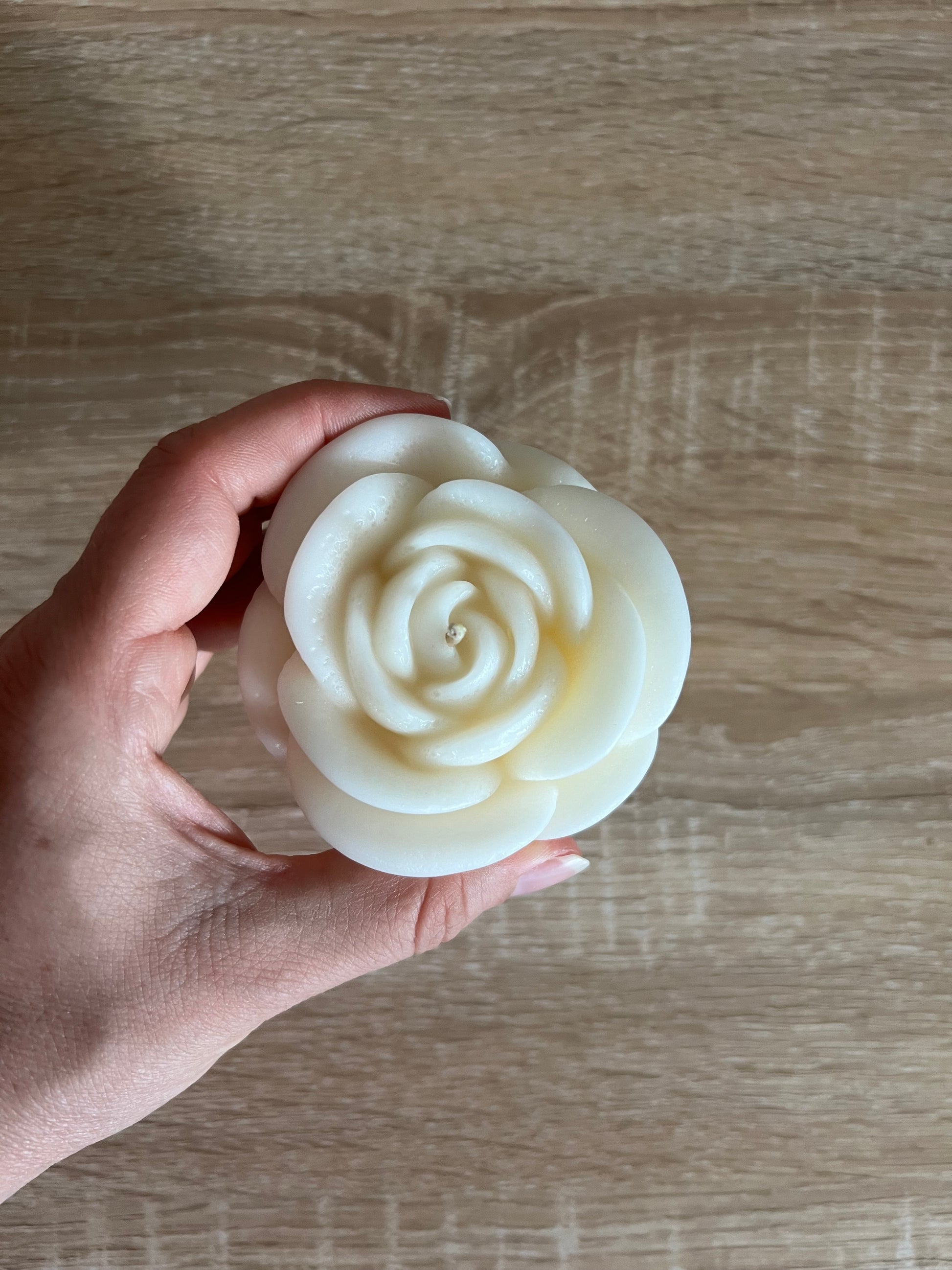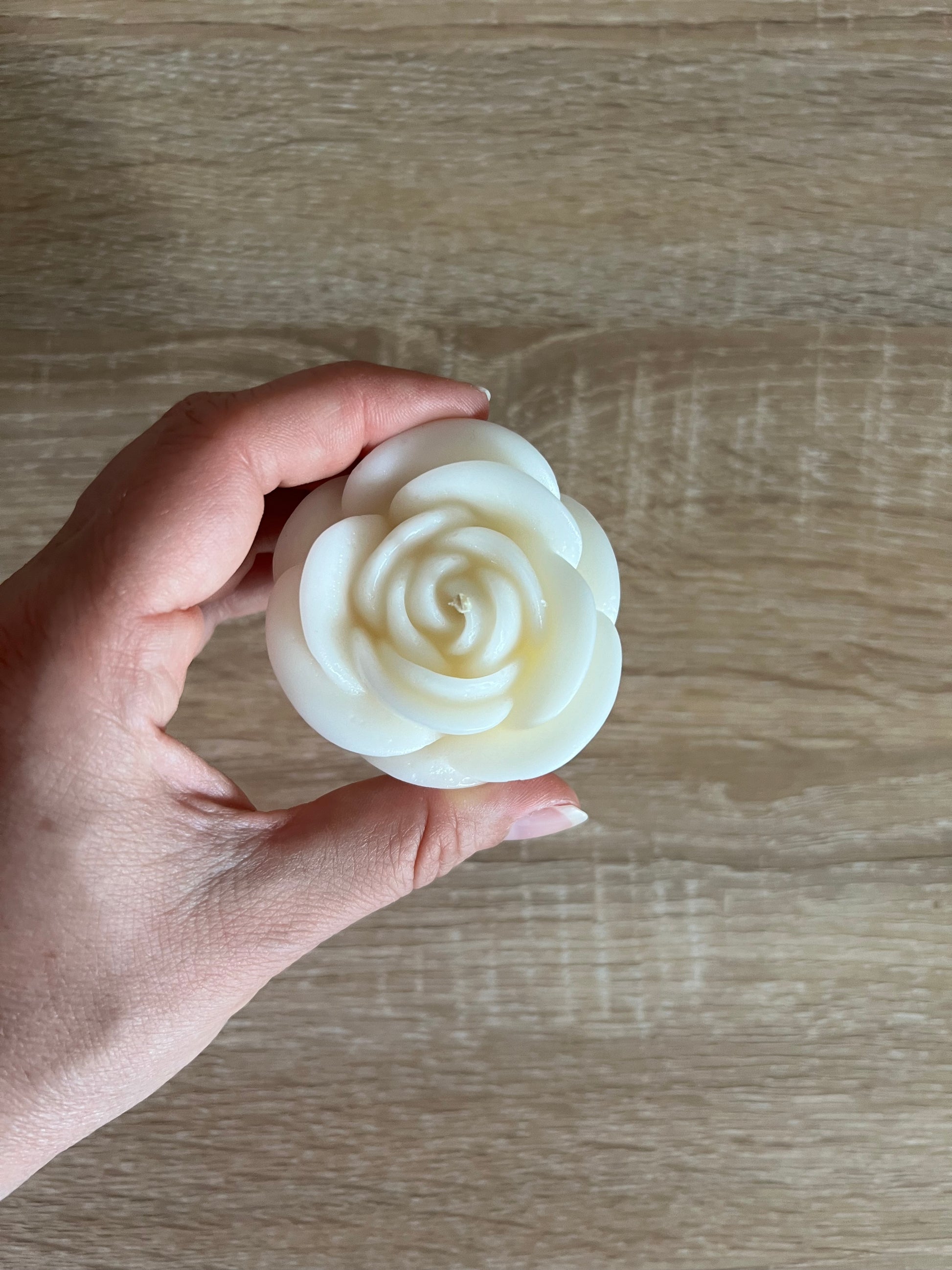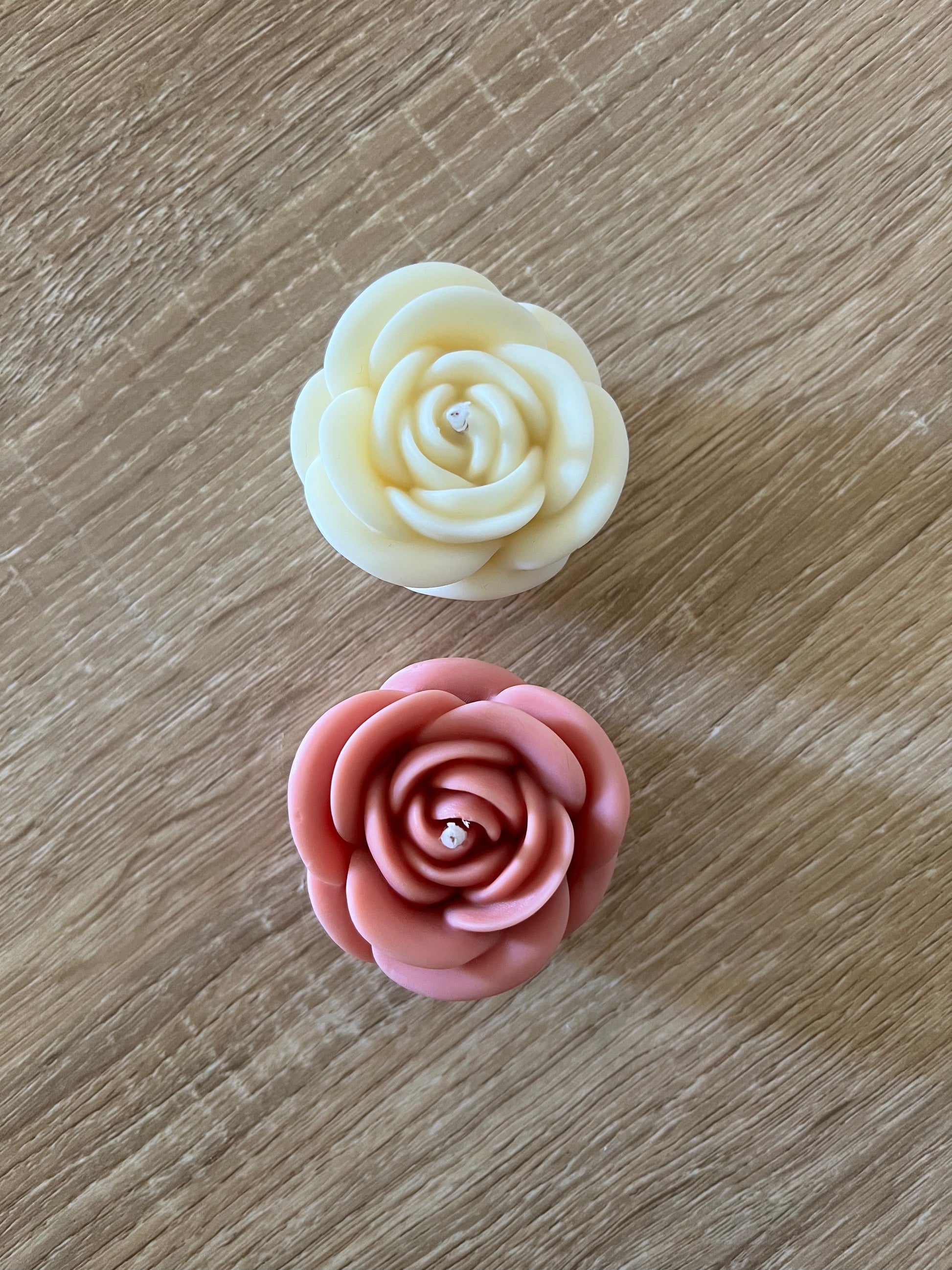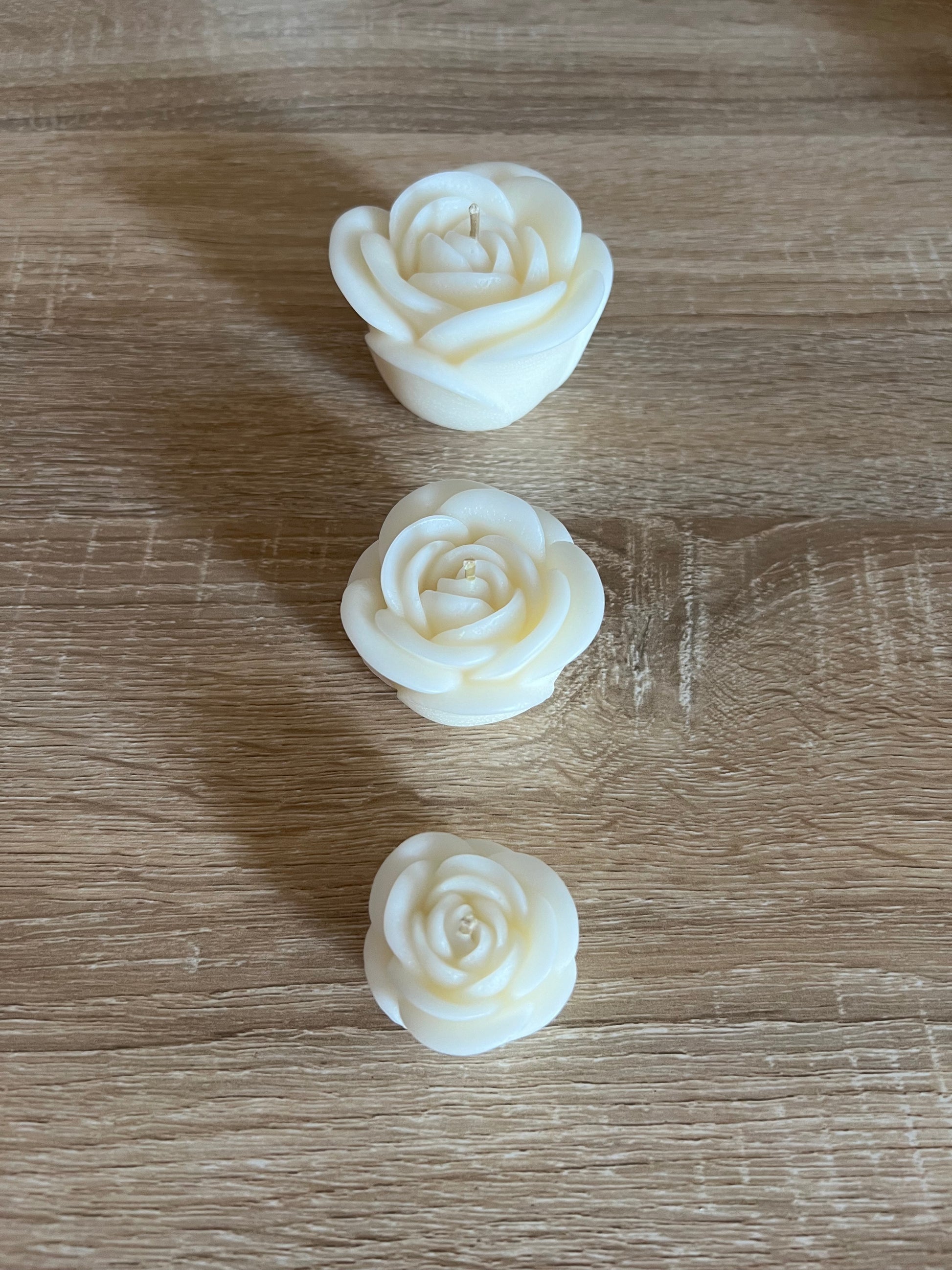 Tris di candele a forma di rosa, in cera di spia, colate a mano.